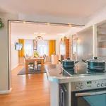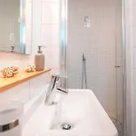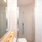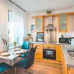 Værelserne er også udstyret med parketgulv og et fuldt udstyret køkken. Et badekar og en brusekabine findes i hvert badeværelse.